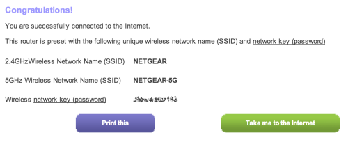 8;将出现以下屏幕,确认设置已完成并显示您的Netgear路由器的无线详细信息。如果您需要通过Wi-Fi将设备连接到Netgear路由器,